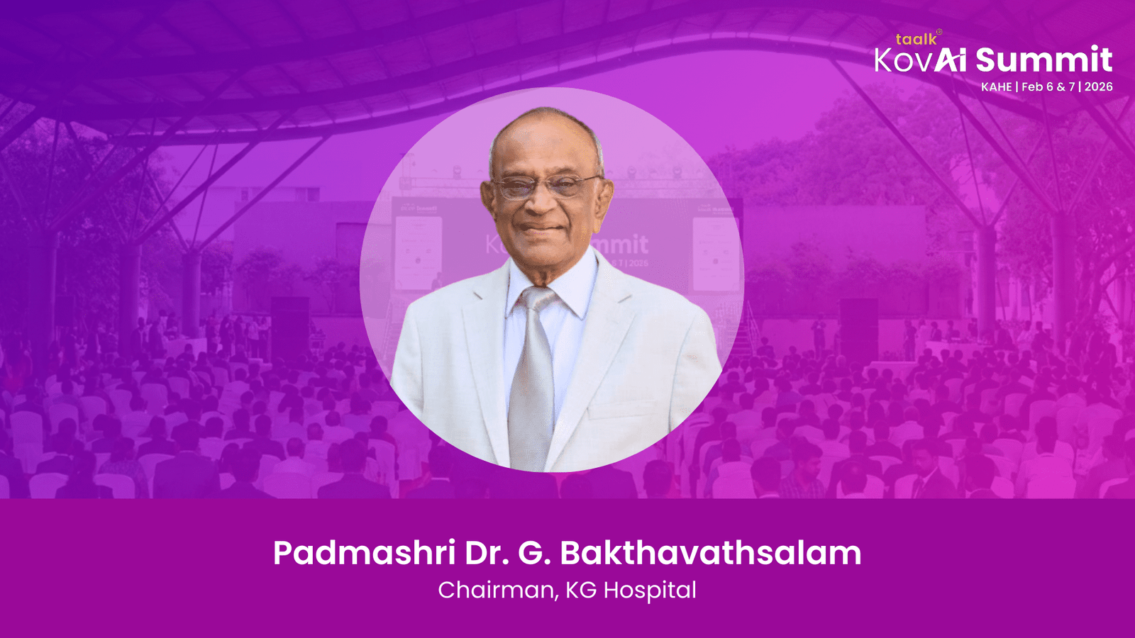 Dr. G. Bakthavathsalam, Chairman of KG Hospital, is one of the most respected healthcare leaders in India and a distinguished speaker at the Kovai Summit. With decades of experience in building patient-centric healthcare institutions, he has played a pivotal role in transforming Coimbatore into a major medical hub.