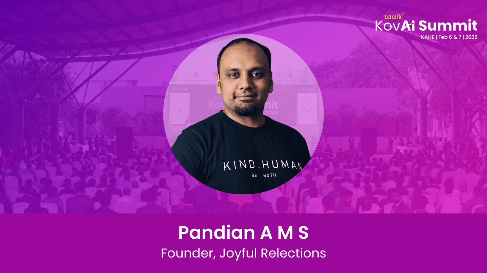 Pandian A M S, Founder of Joyful Reflections, is a performance and well-being coach who will be speaking at the Kovai Summit. He works closely with corporate leaders and entrepreneurs to help them manage stress, improve sleep quality, and achieve sustainable work–life balance. As a result, his approach supports long-term performance rather than short-term productivity.