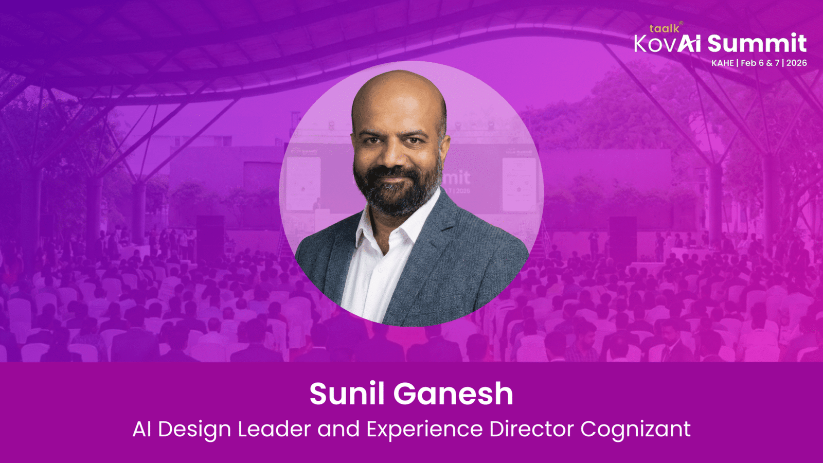 At the Kovai Summit, Sunil Ganesh brings valuable insights into human-centered AI, experience-led digital transformation, and AI design leadership. His session is particularly relevant for designers, product leaders, technologists, and enterprise decision-makers.